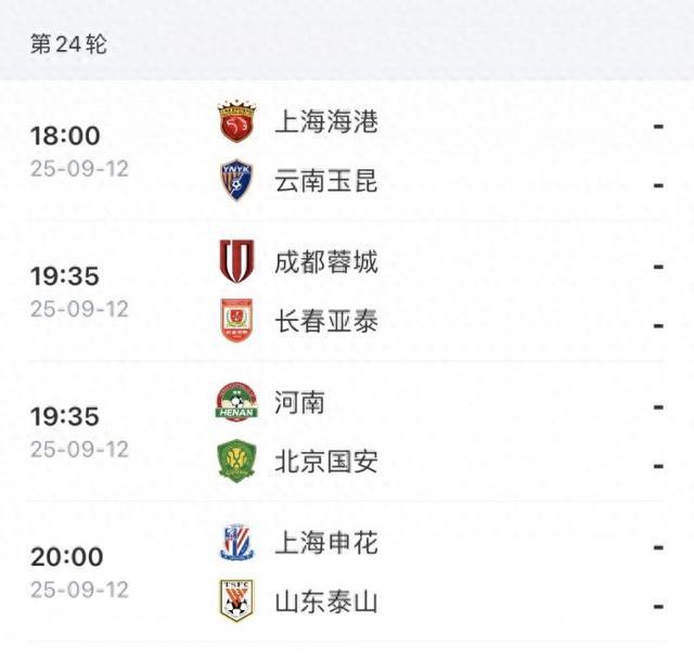 今晚,中超领头羊蓉城主场对阵亚泰,第二的申花对阵泰山,第三的海港对阵玉昆,第四的国安则将客场挑战河南队。